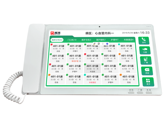 The 15.6-inch physician office console offers extensive functionality, enabling real-time processing of multi-terminal call requests for answering and disconnecting, as well as initiating calls to extensions. It supports bed information overviews and detailed call logs, while also enabling microphone and audio broadcast functions. Features include one-touch clearing of unprocessed calls, nurse location tracking, and missed call redial. Additionally, it supports ward-specific/dialing proxy services, one-touch call transfer/dialing transfer during active calls, and comprehensive assistance for physicians in efficiently managing medical communication and information tasks, thereby enhancing ward service efficiency.