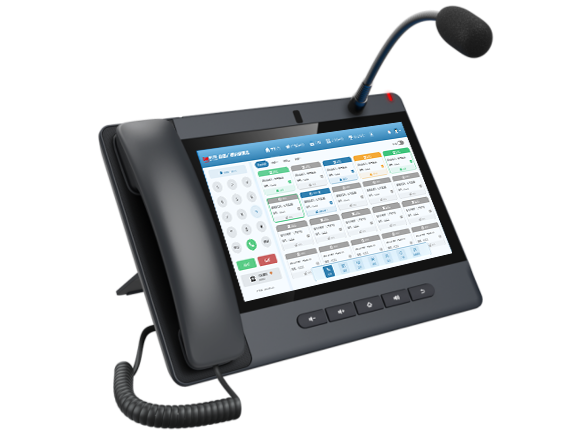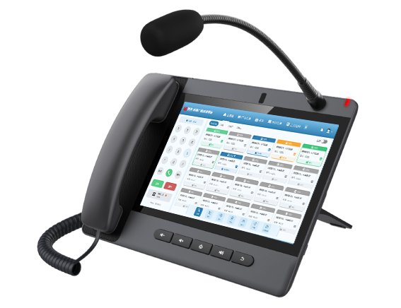HY---DUT03是专门针对行业用户需求研发的一款可视大屏调度台,配备鹅颈麦克风和PTM按键静音手柄,支持高清语音通话。拥有10.1英寸彩色高清触摸屏,搭载安卓9.0操作系统,为用户带来更加流畅和智能化的使用体验。标准SIP协议,可作为监控中心、指挥中心管理主机使用,可对管理辖区内的主机和分机进行呼叫、双向对讲、监听/监视、广播喊话。