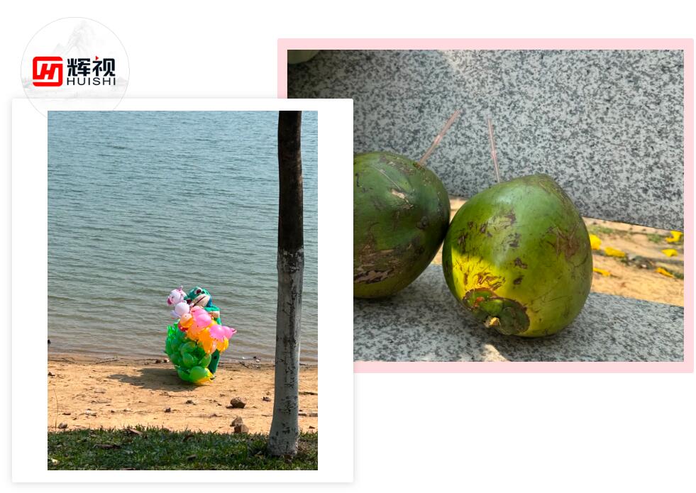 正午骄阳催人寻荫,集体冲向洗手间途中,设计阿节眼尖发现树丛后藏着间小木屋商铺。“现开椰青!10元管饱!”的招牌让众人走不动道。大家果断扫码一人一颗,老板娘刀起椰落,清甜气息瞬间漫开。举着插吸管的椰子碰杯,不经意间一撇,发现路边沙滩下一只青蛙斜着孩子们给我们比心,这个用十块钱买下整片海风的记忆,让我们连去洗手间都成了让人心情愉悦的热带风情漫步。
