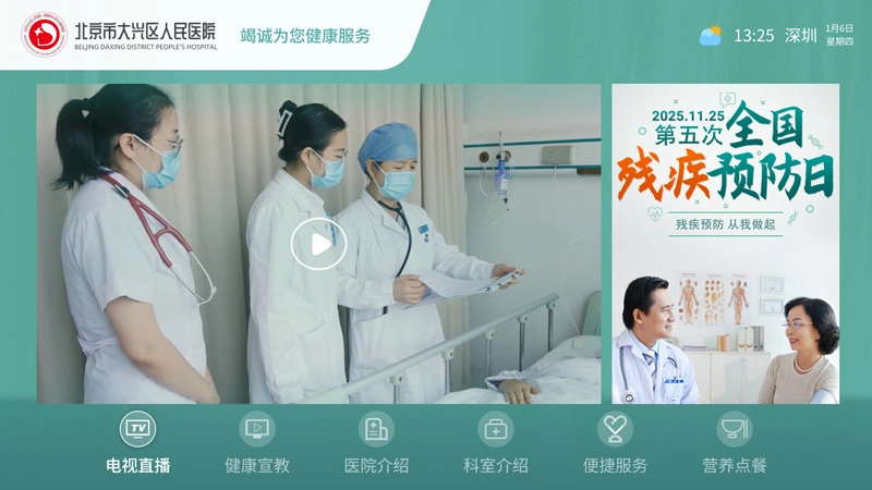 大兴区人民医院正是立足于解决这些核心痛点,旨在通过一个统一、可控、可扩展的平台,将电视直播、医院信息、健康宣教、娱乐服务高效整合,实现:以患者为中心,环境舒适便捷;管理智能简单,打造优质医疗。