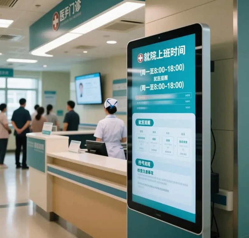 智能终端“硬”升级:105块硬件终端屏的部署。我们在心胸内科、神经内科病房、护士站和公共区域,总共部署了105块电视宣传屏,让信息和服务能够直达患者和医护人员。