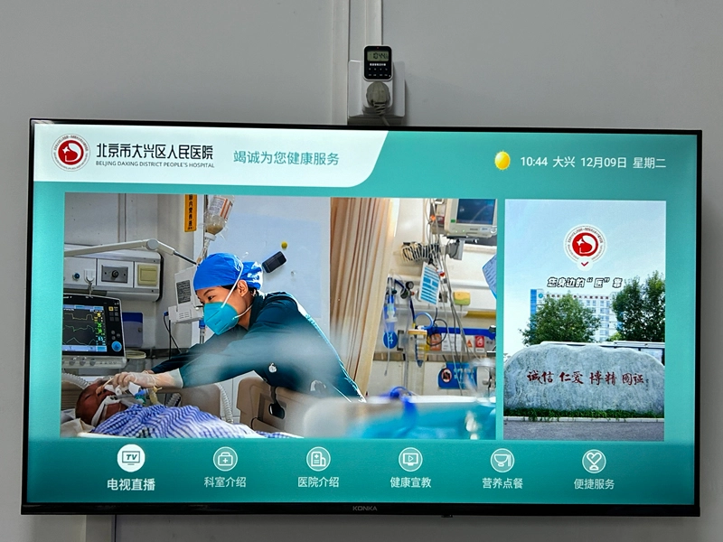 在传统医疗环境中,患者和陪护家属普遍面临无聊、无助、焦虑的情绪困扰,同时存在缺乏医疗知识、信息获取困难等痛点。 对于医护人员而言,重复性工作较多、精神压力巨大,且院内系统间存在信息孤岛,导致运转效率低下,服务水平提升受限。 大兴区人民医院正是立足于解决这些核心痛点,旨在通过一个统一、可控、可扩展的平台,将电视直播、医院信息、健康宣教、娱乐服务高效整合,实现:以患者为中心,环境舒适便捷;管理智能简单,打造优质医疗。